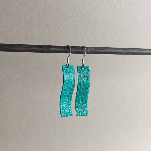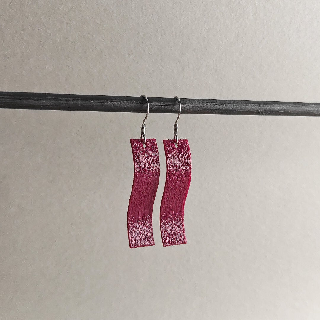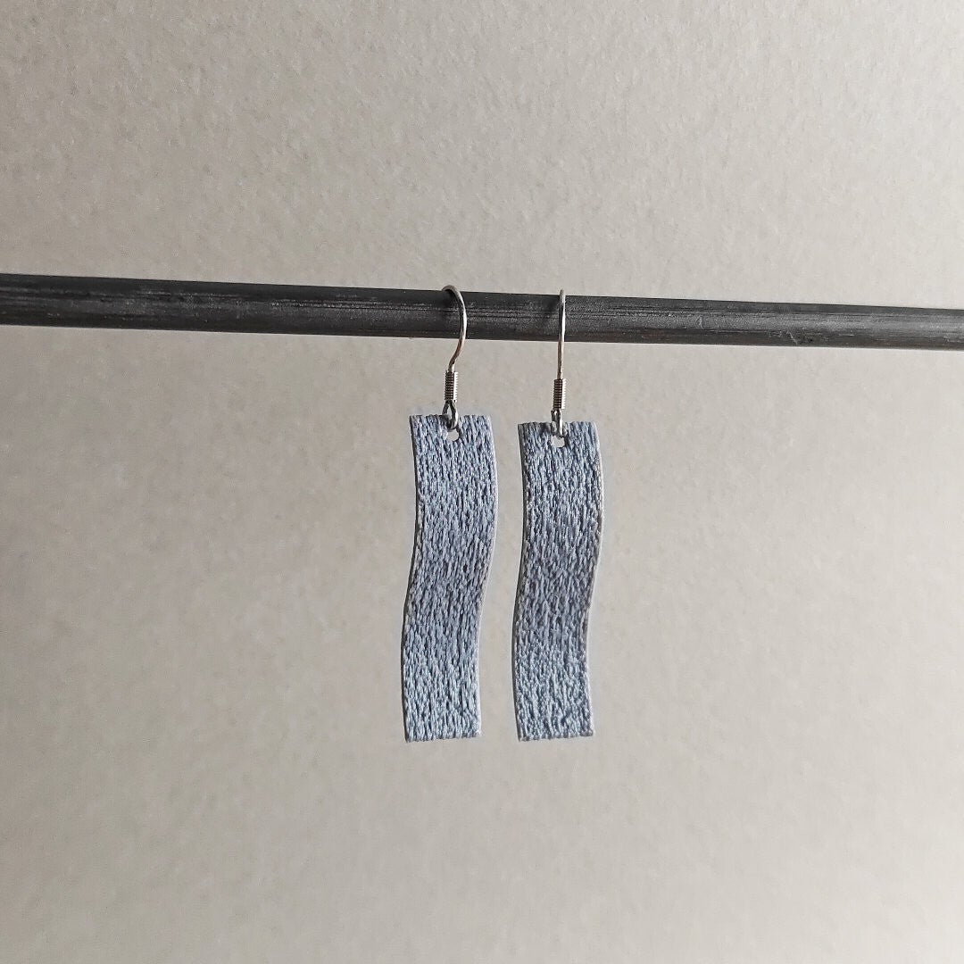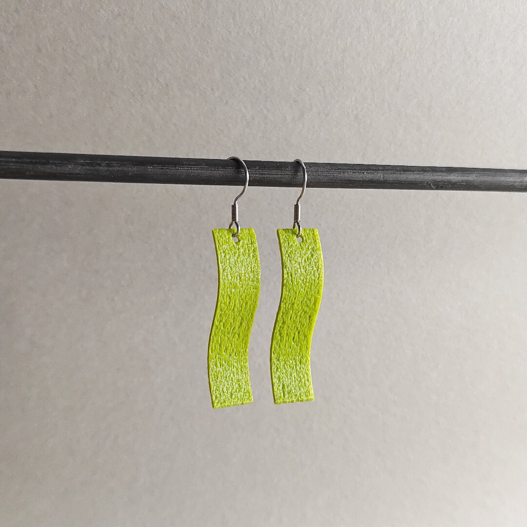 Ge-3d-printe oorbel in kunststof (PLA*) met een zilverkleurig haakje in roestvrij staal.