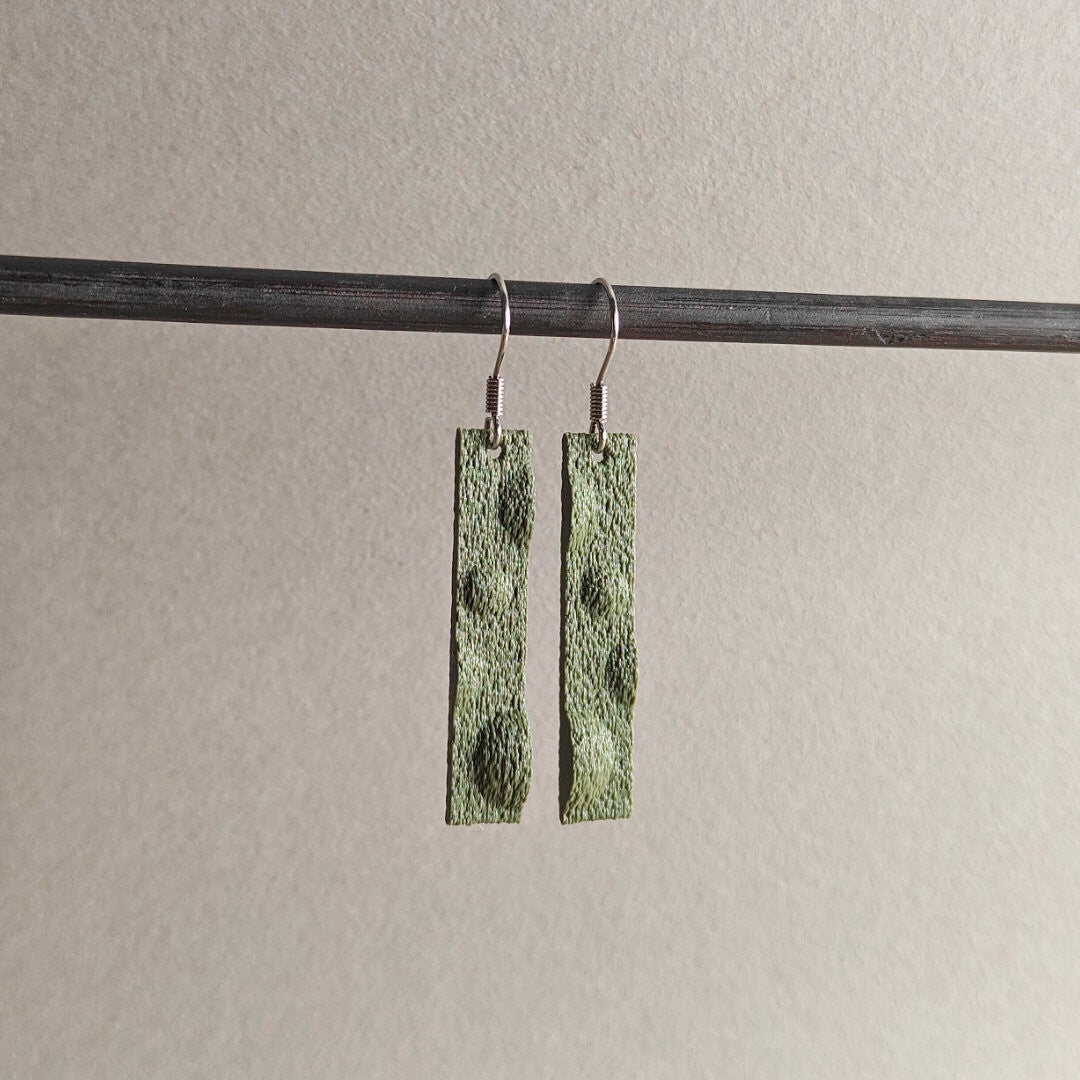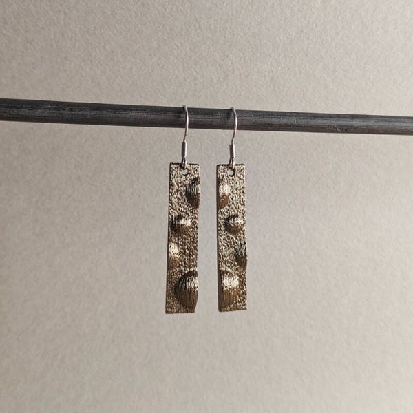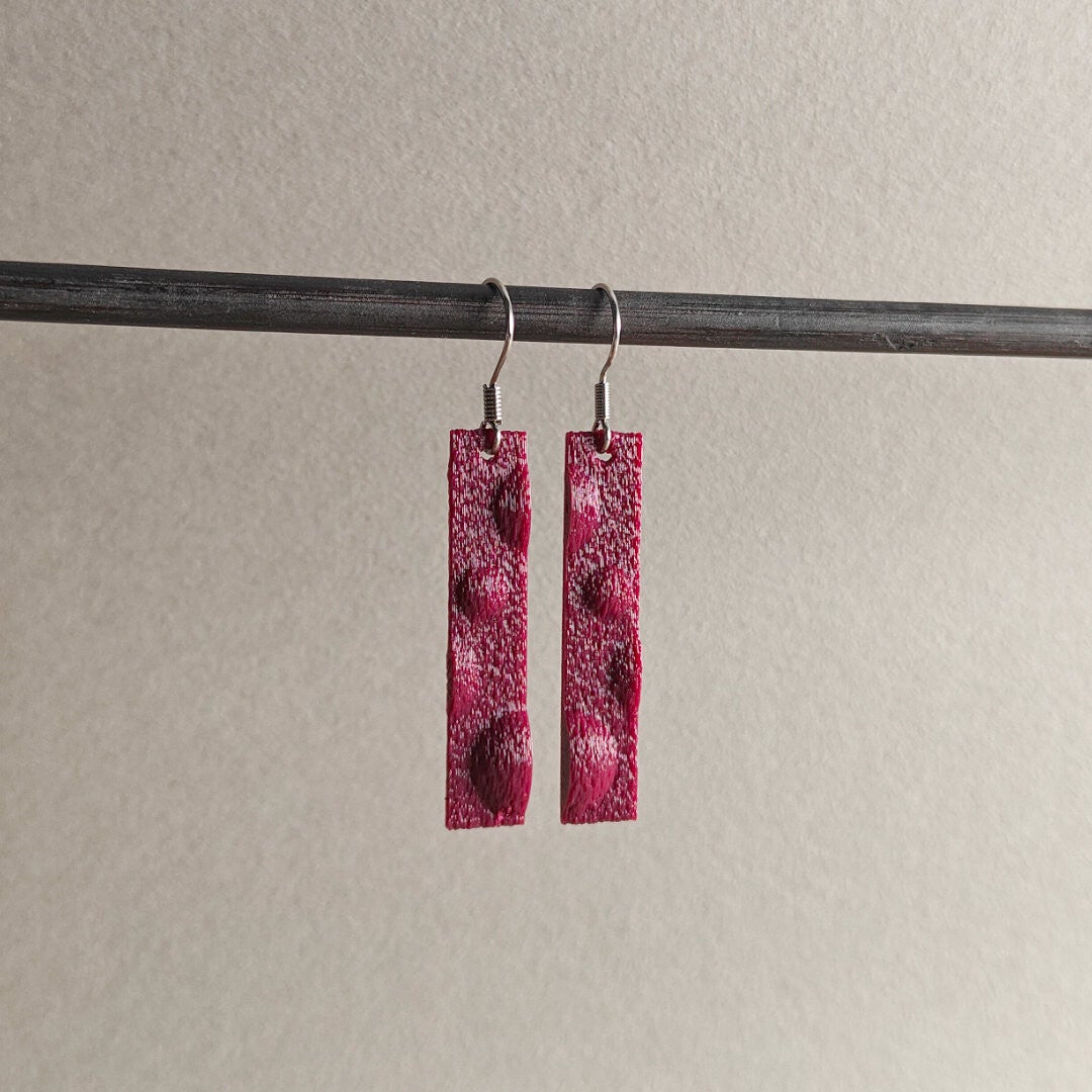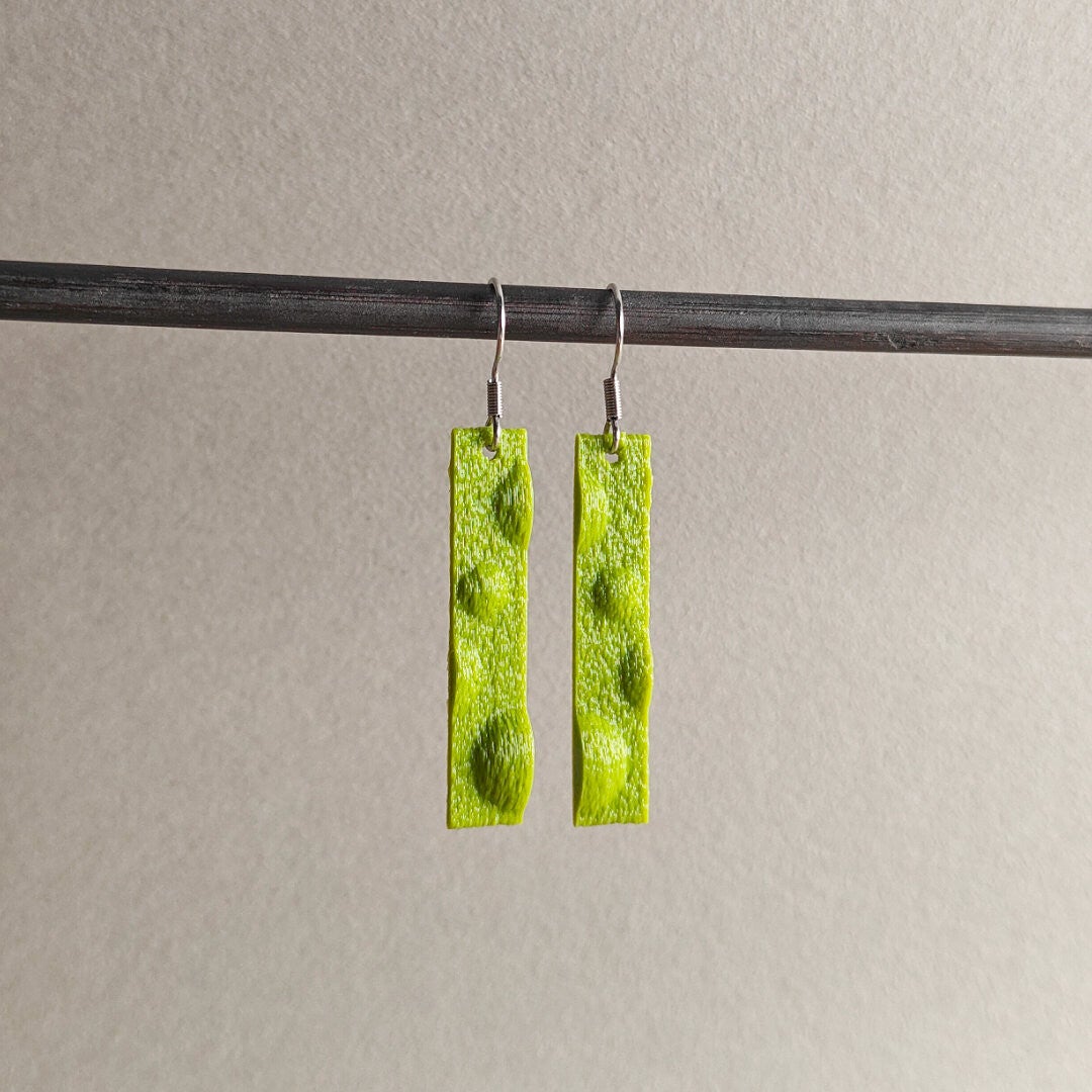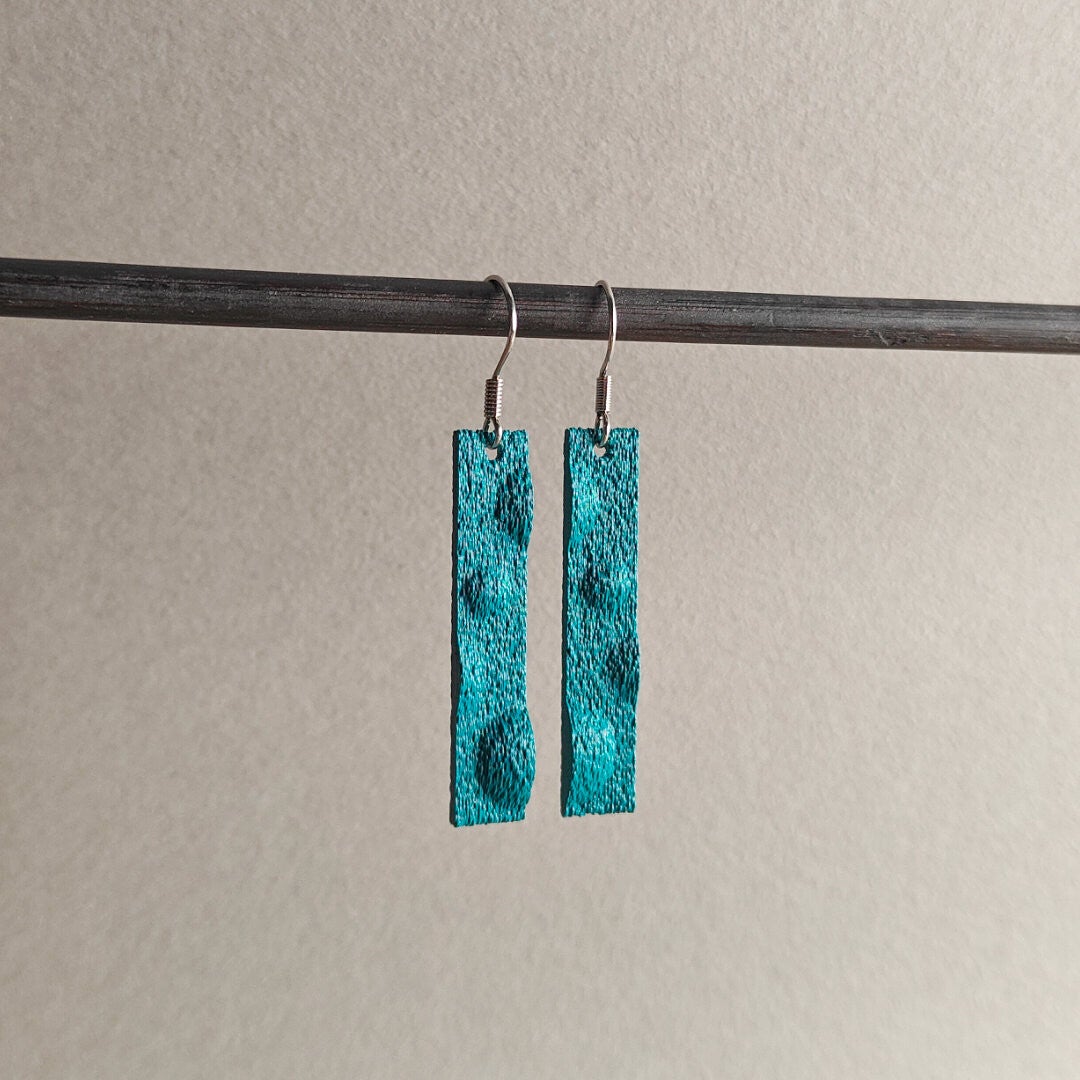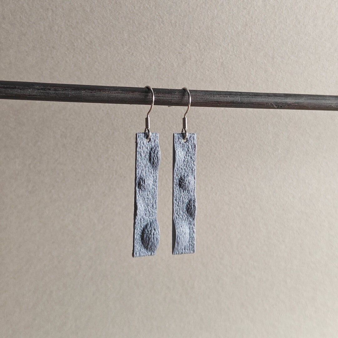 Ge-3d-printe oorbellen in kunststof (PLA*) met een zilverkleurig haakje in roestvrij staal.