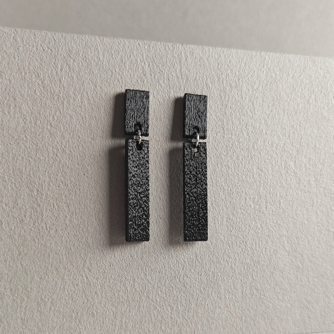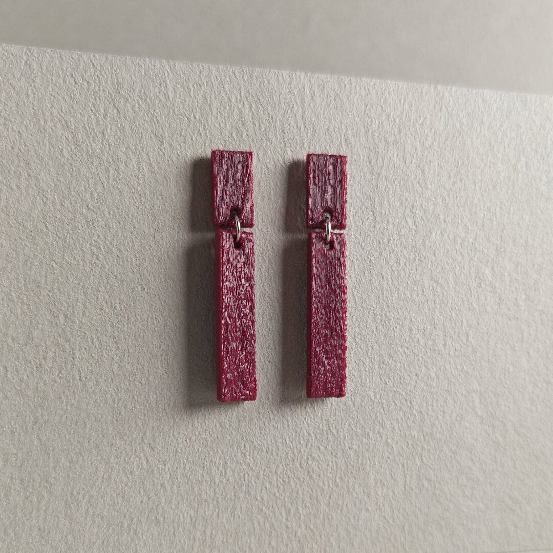 Ge-3d-printe oorbellen in kunststof (PLA*), stekertje in roestvrij staal.