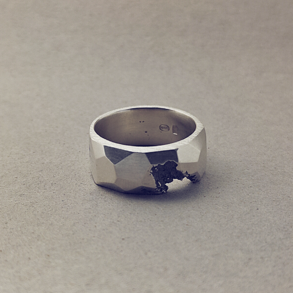 Afwerking : mat/geborsteld met ruwe gepatineerde diepere elementen.